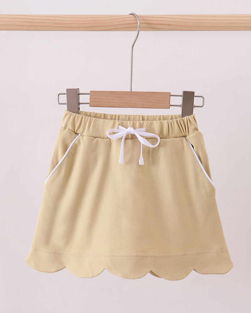 - Girls khaki scallop hem skirt