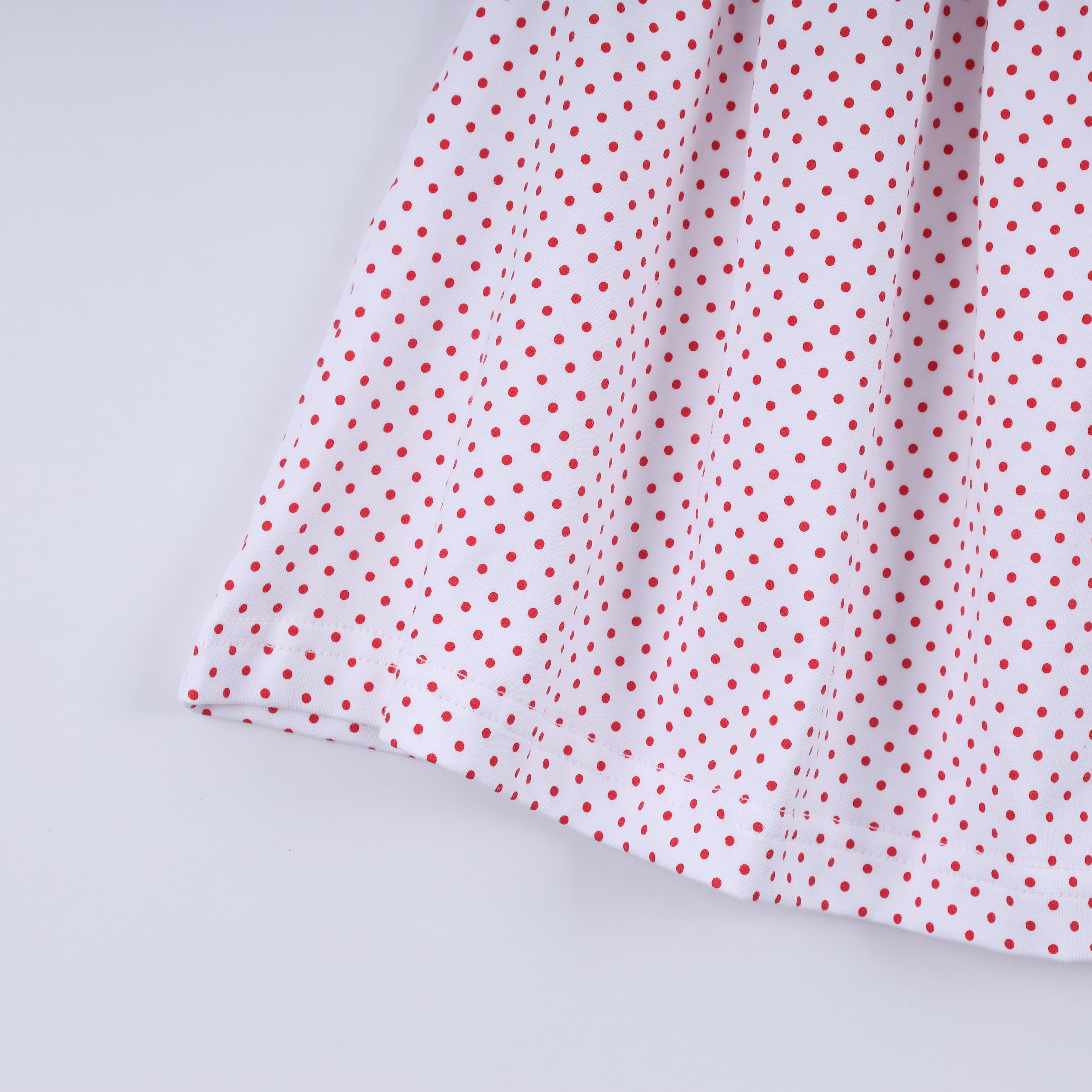 - Polka-dot top with elastic puff sleeves