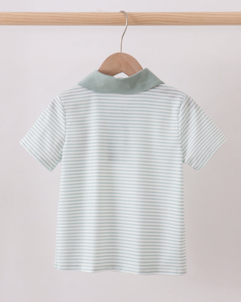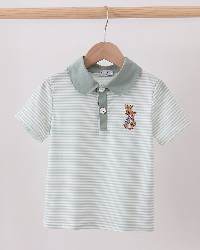 The Peter Bunny Sage Stripe Boy Shirt is a beautifully classic piece that blends comfort with timeless charm—perfect for little boys all season long.