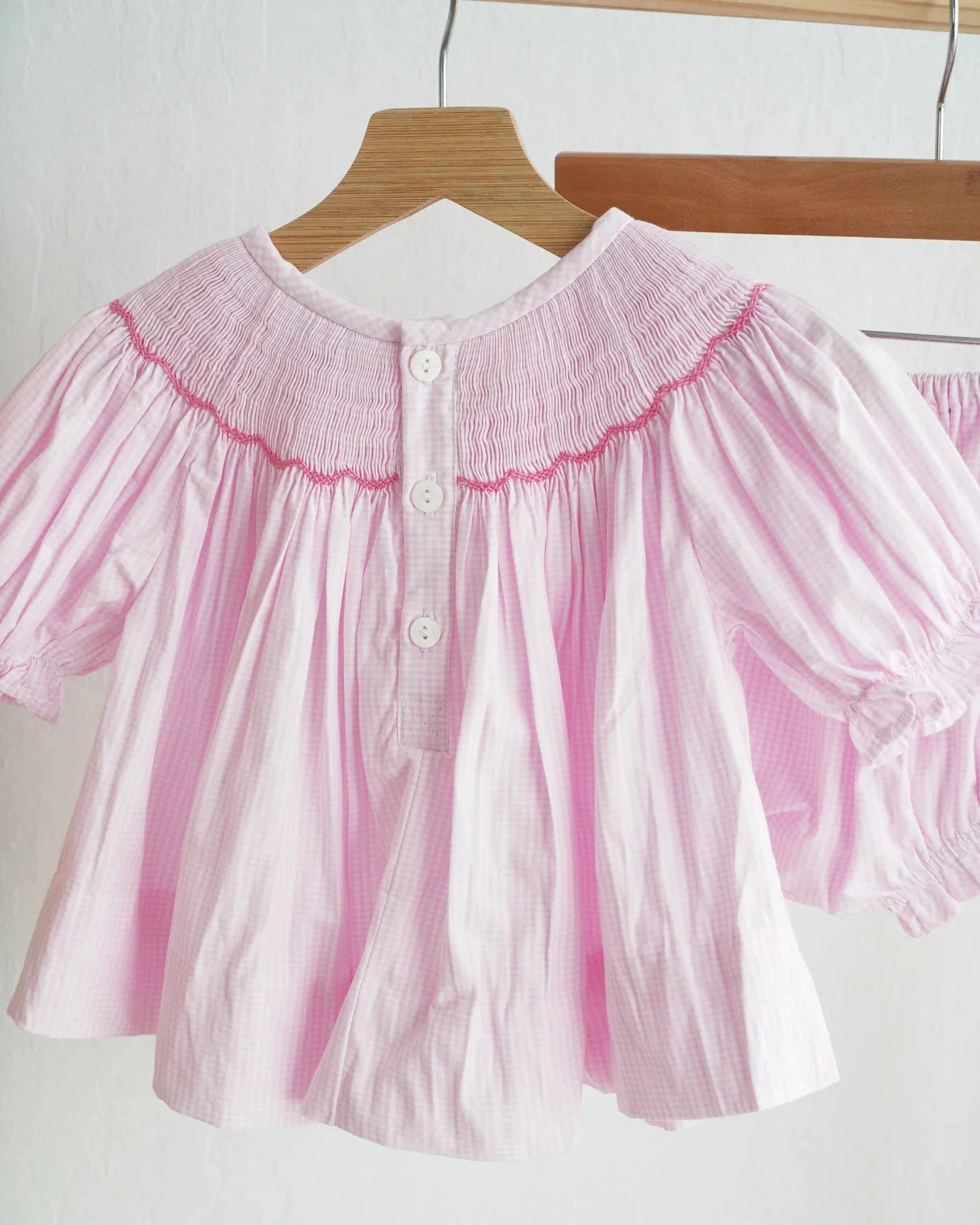 Made in soft pink gingham, this darling set includes matching ruffle bloomers for a picture-perfect boutique look. Whether she’s baking cookies, visiting Santa, or posing for Christmas photos, this outfit is made for memories that last.