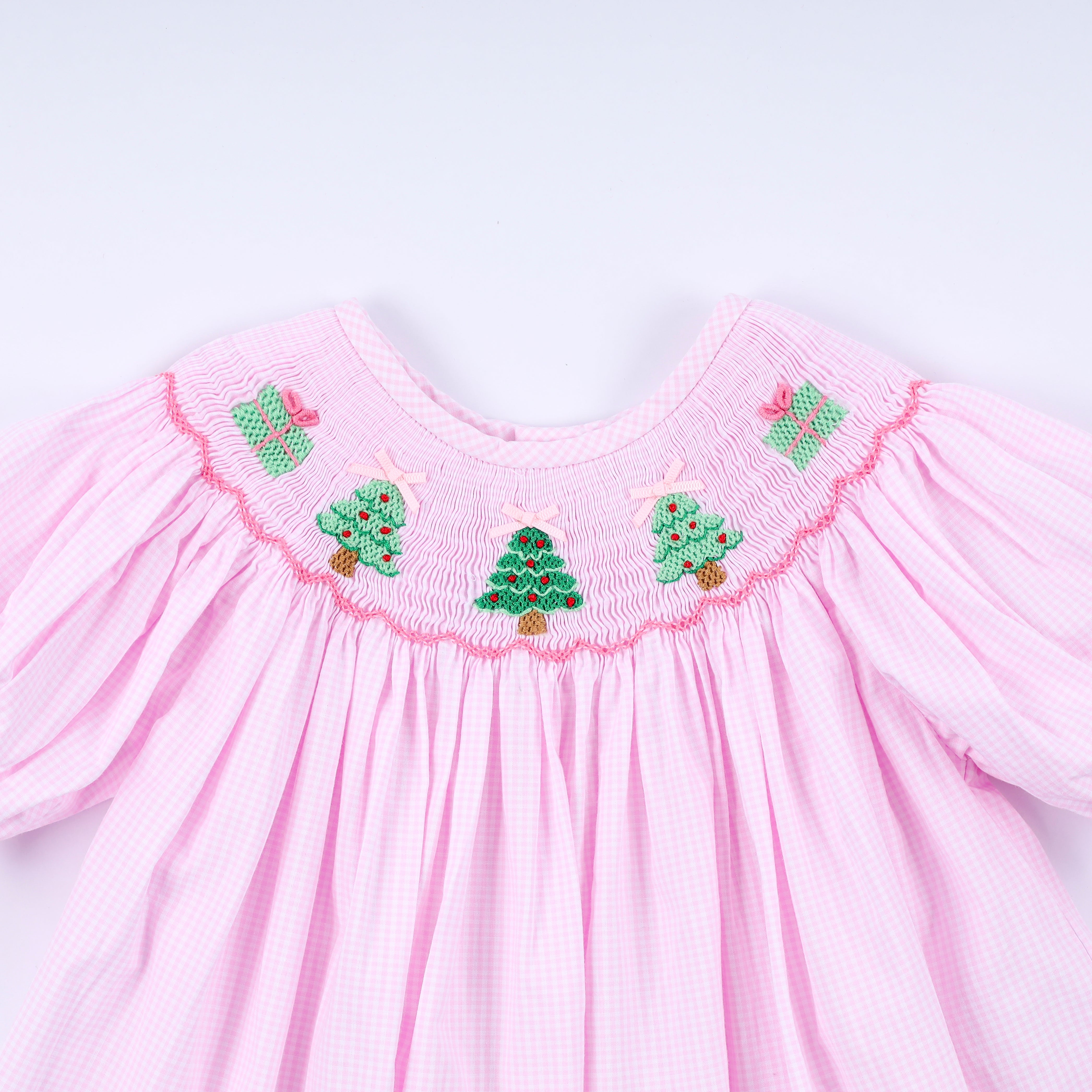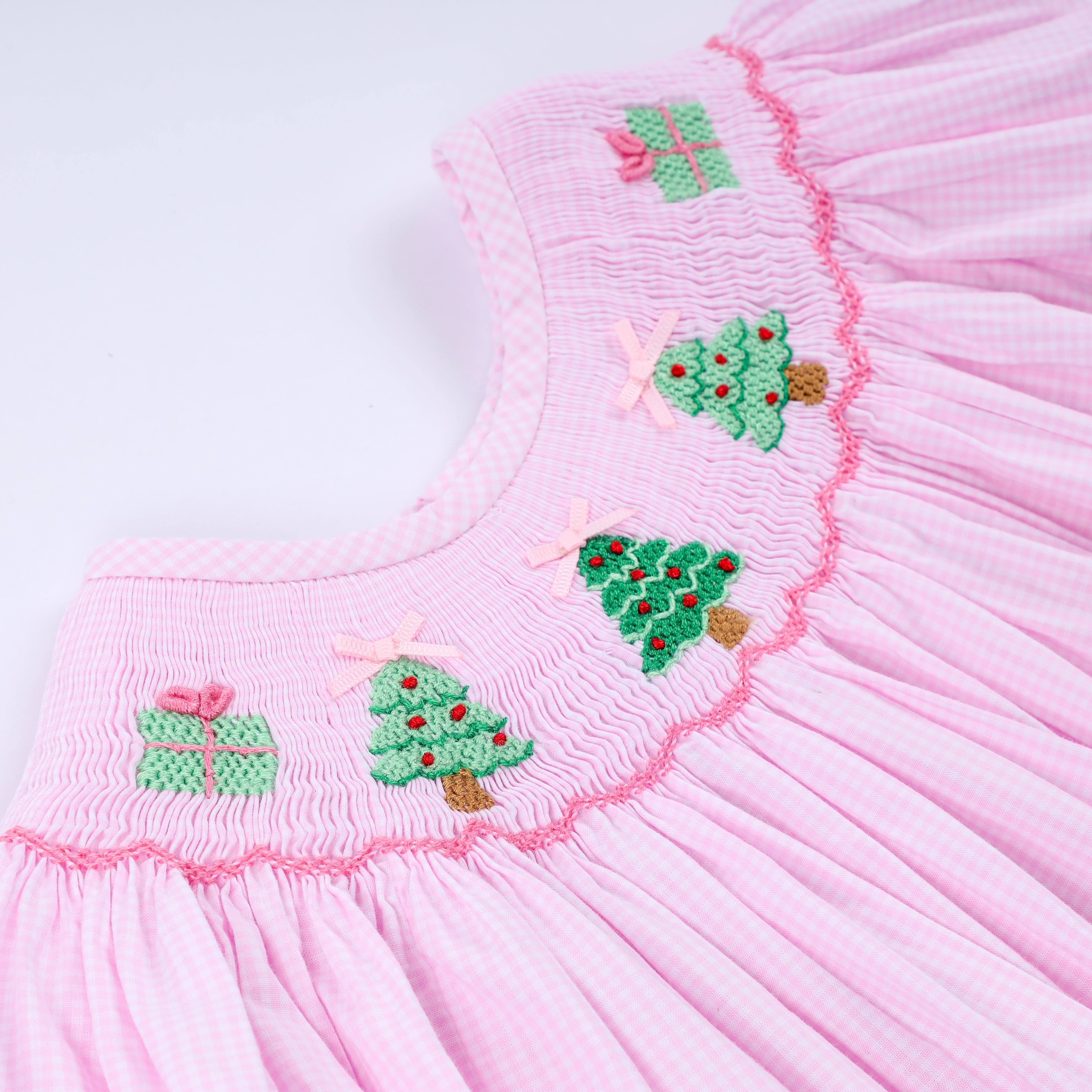 - 🎄 Hand-smocked Christmas trees with embroidered bows & gifts
