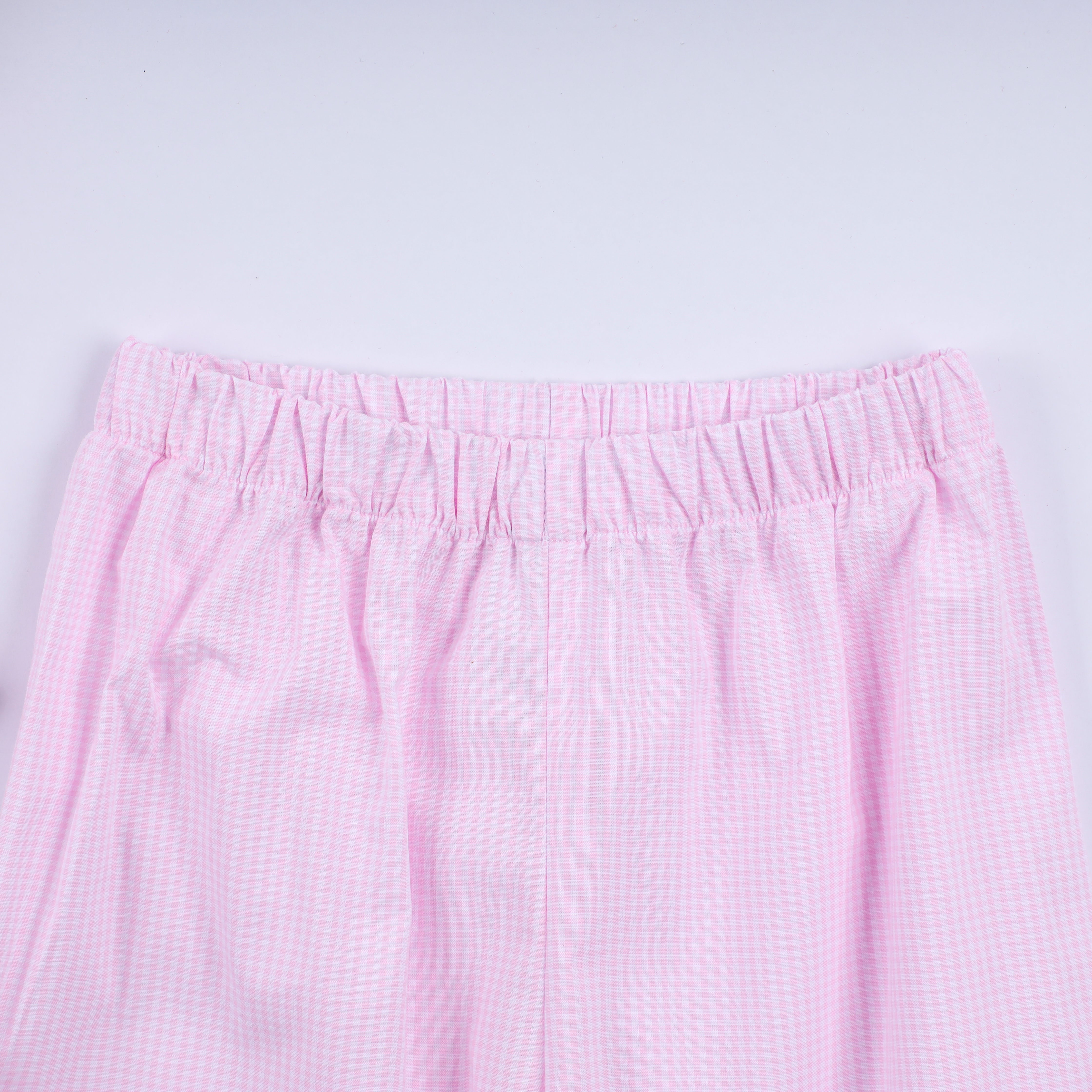 Crafted in a soft pink gingham, the bishop-style top pairs perfectly with the coordinating double-ruffle pants, adding extra twirl and flair to her Christmas celebrations. Comfortable, classic, and undeniably adorable, this is the set she’ll want to wear all season long.