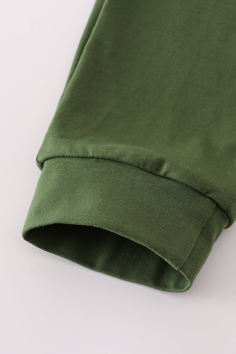 The matching moss-green jogger pants are soft, stretchy, and easy to move in—ideal for playtime, errands, and exploring the great outdoors. With a comfy elastic waistband and gathered cuffs, they offer a perfect blend of style and practicality.