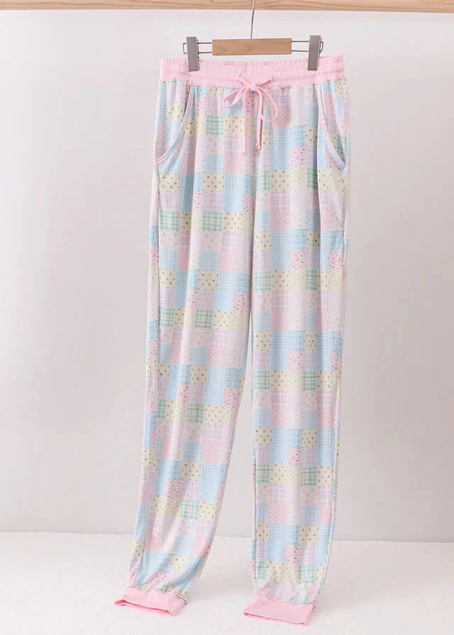 Relax in style with our Blossom Checks Bamboo Women’s Lounge Pants. Designed in a soft pastel checkered patchwork print, these pants combine cozy comfort with a chic, laid-back look. Made from breathable, buttery-soft bamboo fabric, they’re perfect for lounging at home, running errands, or pairing with your favorite tee for casual wear.