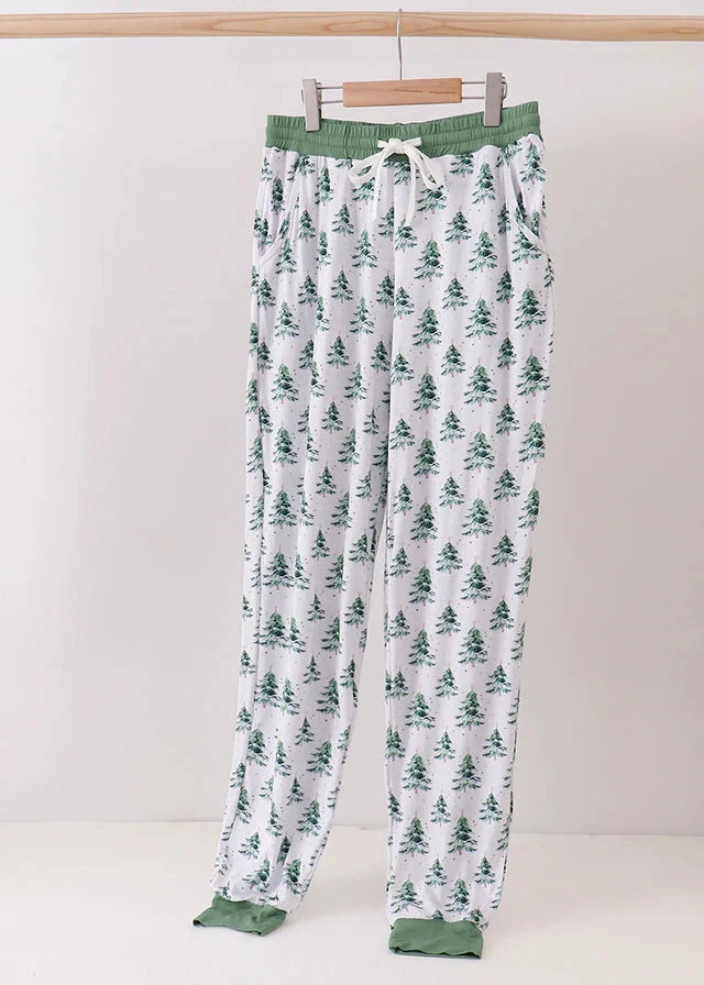 Made from silky-smooth bamboo fabric, these lounge pants are perfect for holiday mornings, family movie nights, or relaxing by the fire. The charming evergreen pine print adds a touch of Christmas cheer, while the drawstring waist and relaxed fit ensure ultimate comfort and style for everyone.