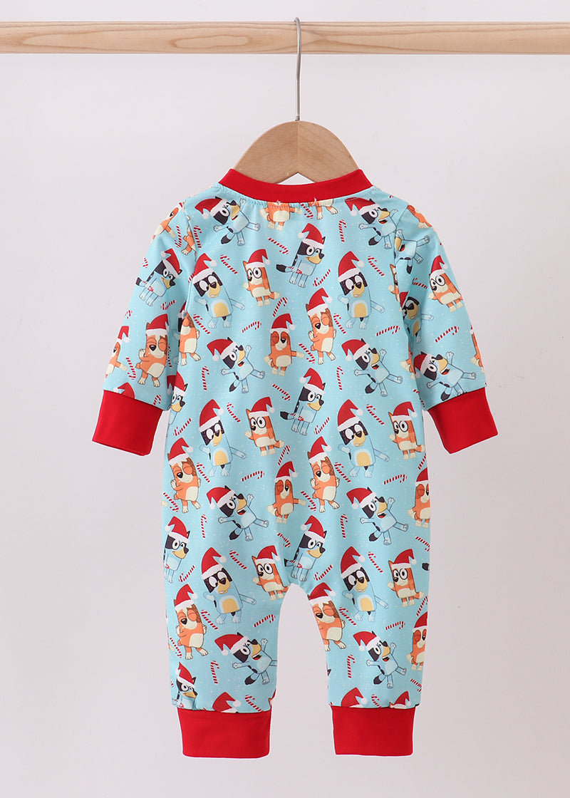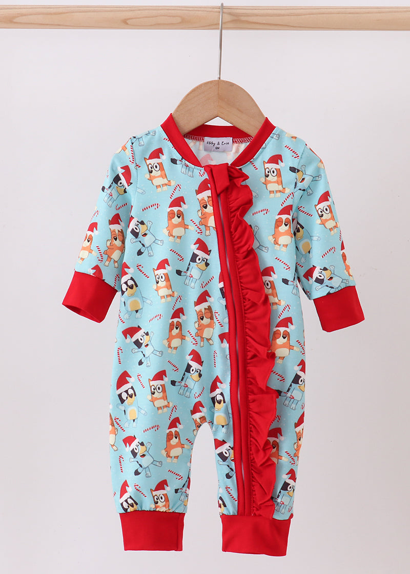 Merry Blue Dog Characters Christmas Ruffle Romper