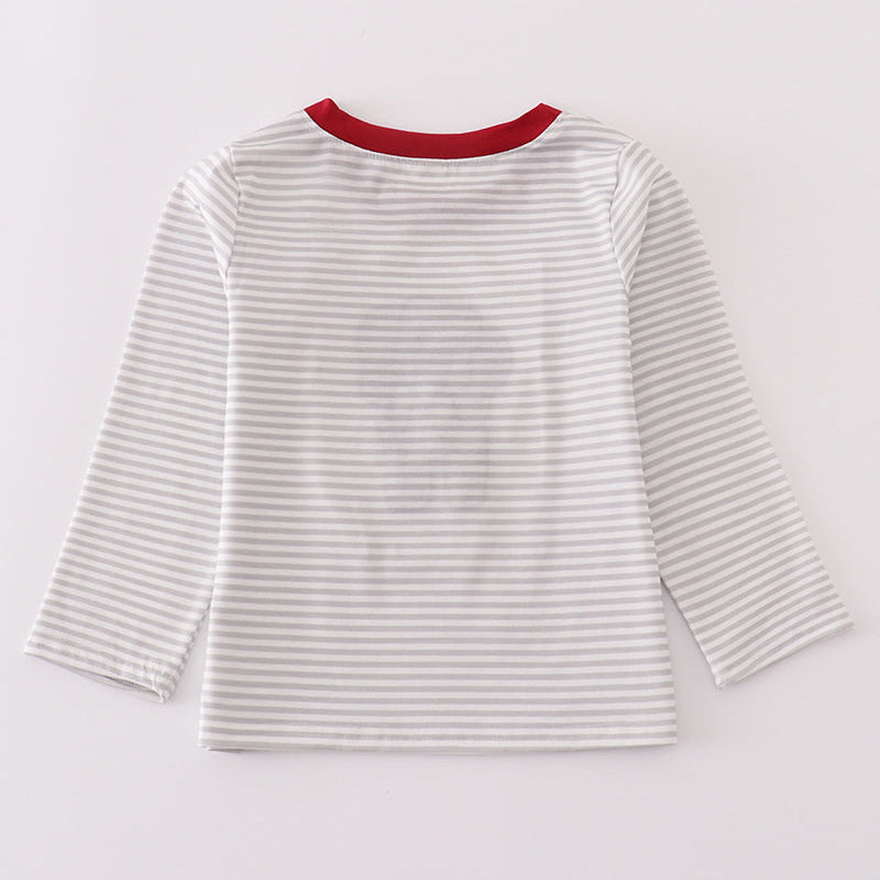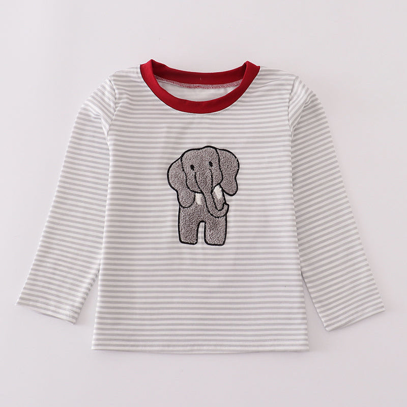 Crimson Tide Stripe Elephant French Knot Boy Long Sleeve Top