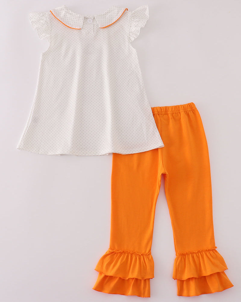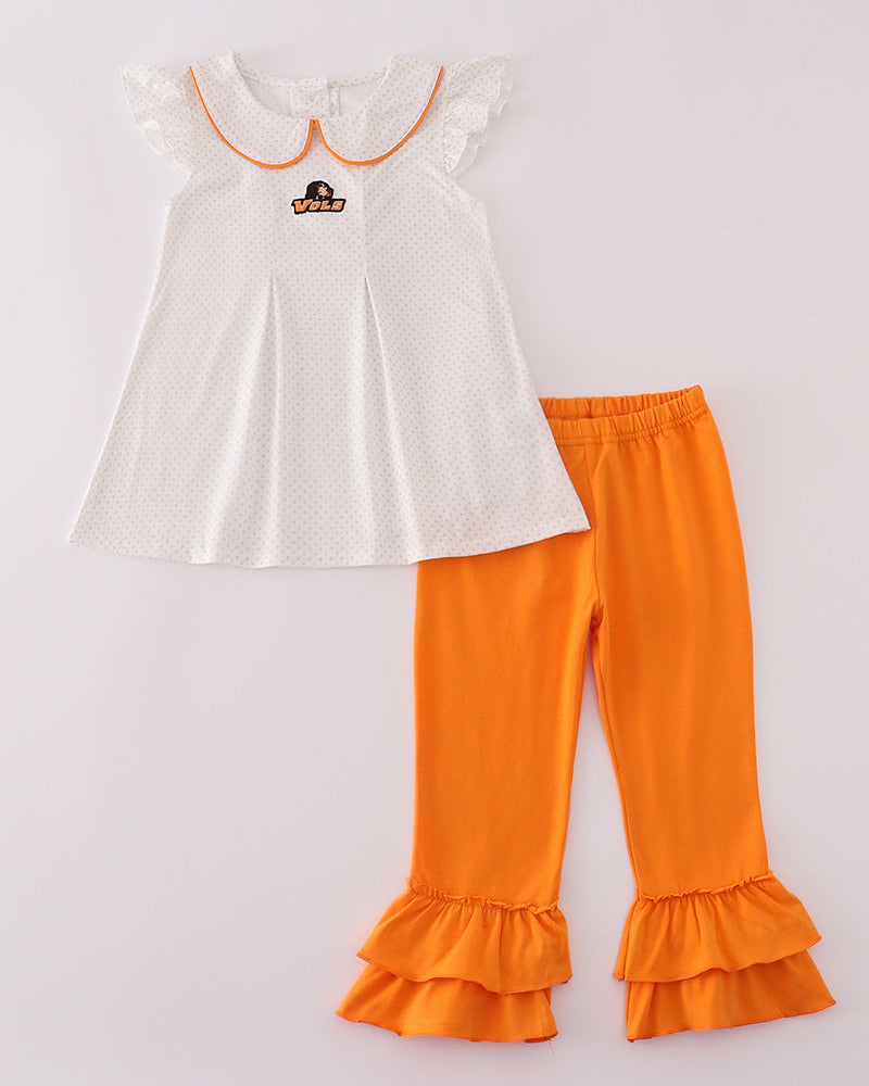 Cheer on the Tennessee Vols in style with our Smokey Applique Orange Girl Ruffle Pants Set! 🧡🐾