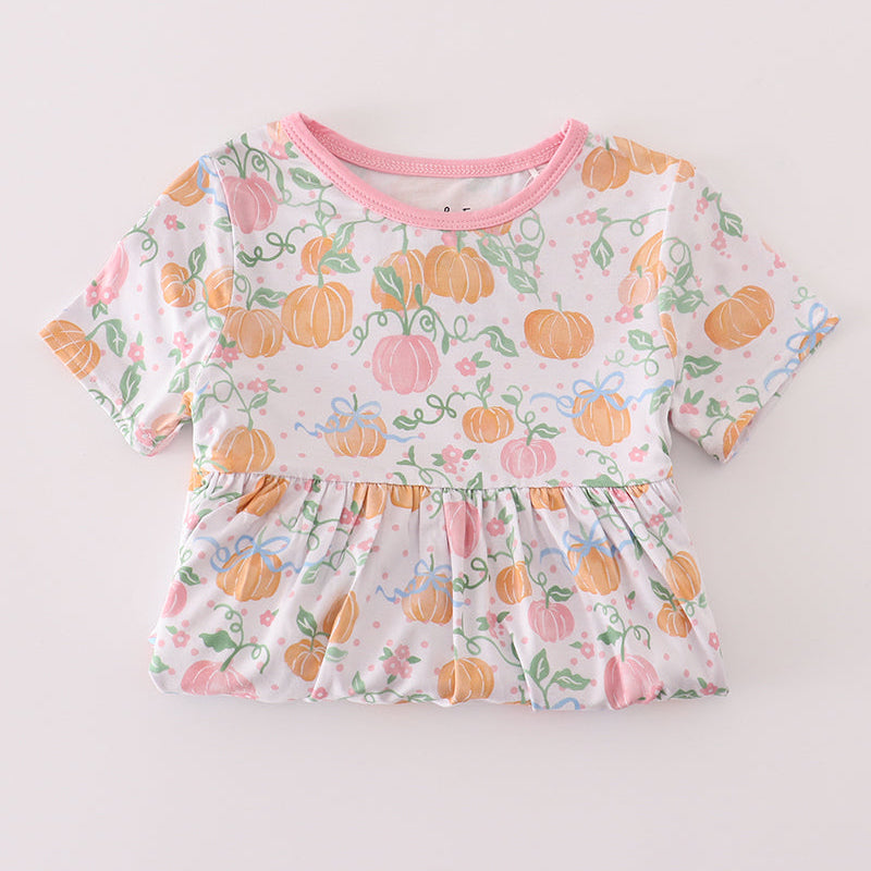 Dress your little pumpkin in cozy autumn charm with the Blush Pumpkin Fields Bamboo Dress—a seasonal favorite she’ll want to wear again and again.