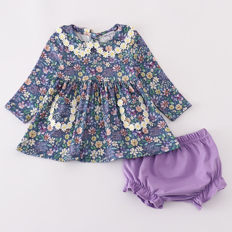 - Includes: Floral top + matching bloomers