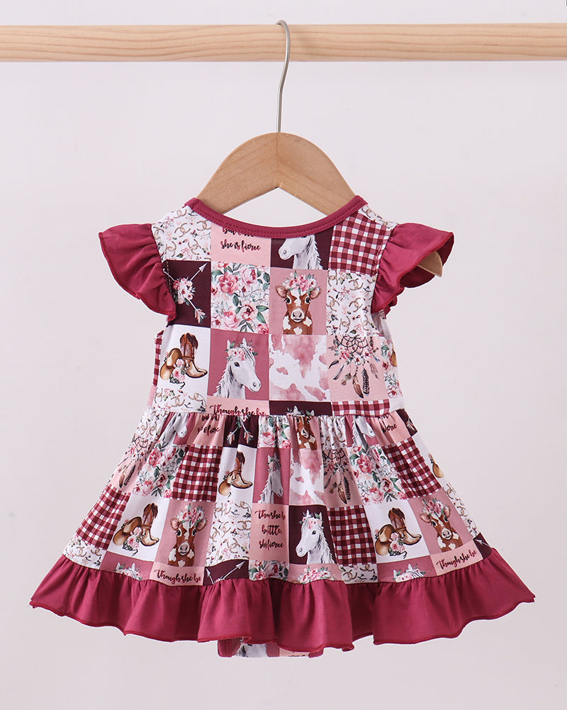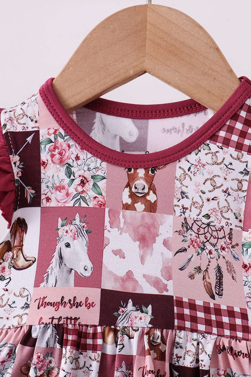 Celebrate strength, sweetness, and farm-charm style with the Little but Fierce Farm Patchwork Bamboo Ruffle Bubble. Designed with a beautifully detailed patchwork print featuring horses, florals, gingham, and inspirational accents, this darling bubble is full of rustic personality and boutique appeal.