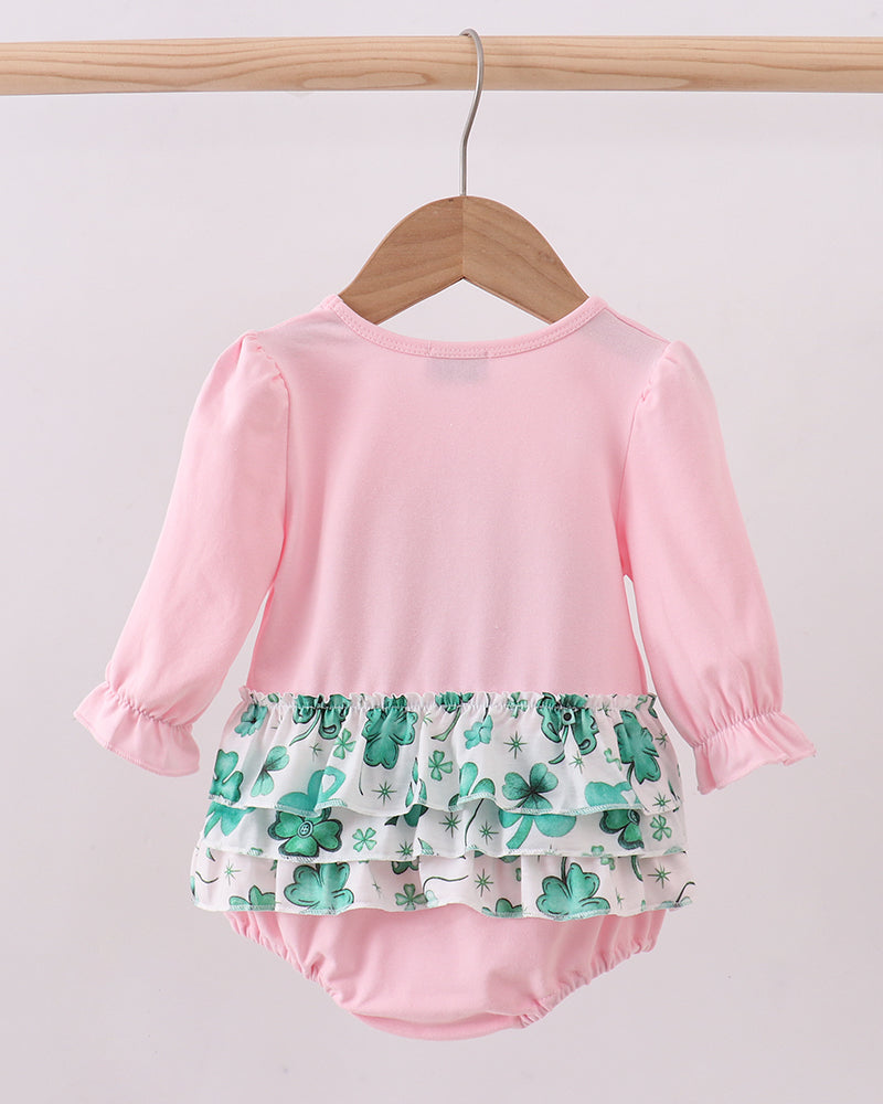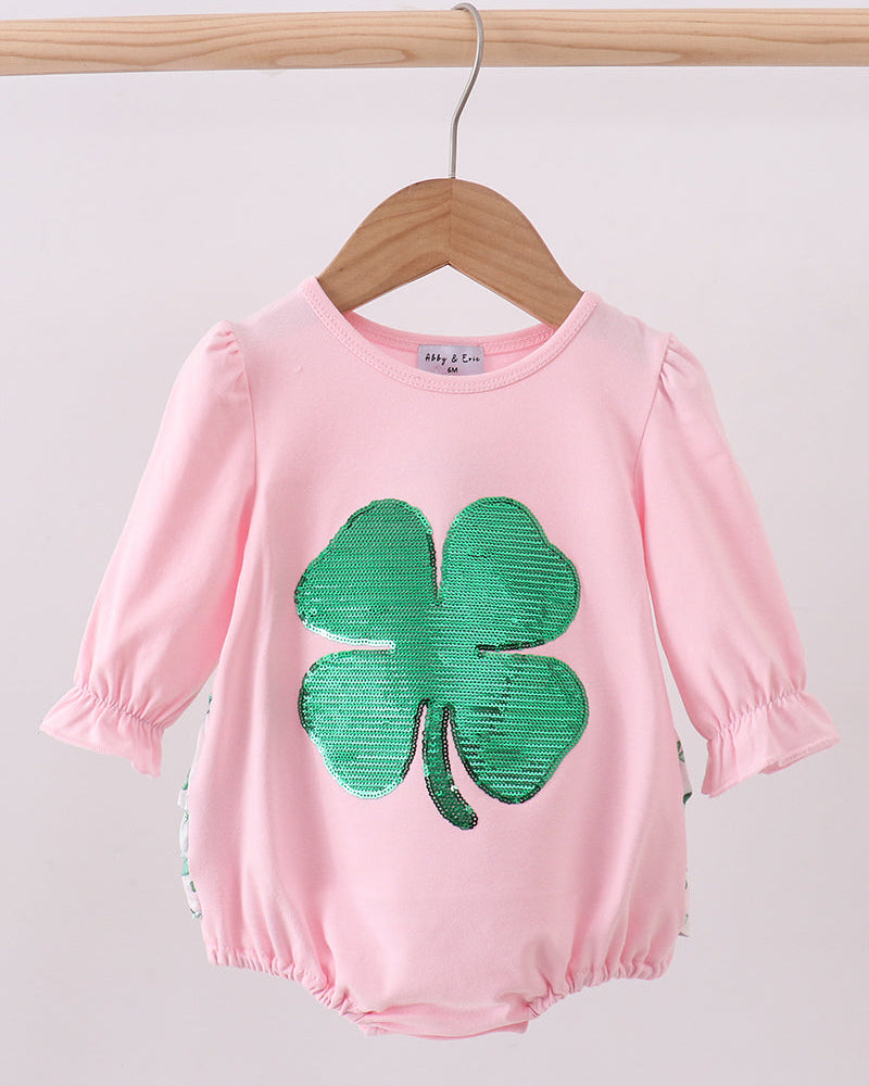 Designed with comfort in mind, the lightweight fabric allows for easy movement while the bubble silhouette creates a precious look for photos and play. Whether celebrating St. Patrick’s Day or simply adding a pop of sparkle, the Little Lucky Clover Glitter Ruffle Bubble is a delightful choice for your little lucky charm.