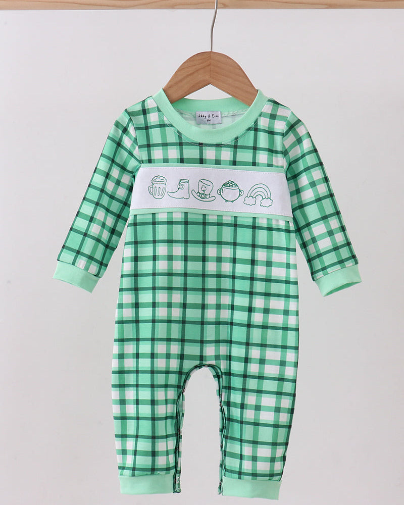 Shamrock Stroll Embroidered Gingham Baby Romper