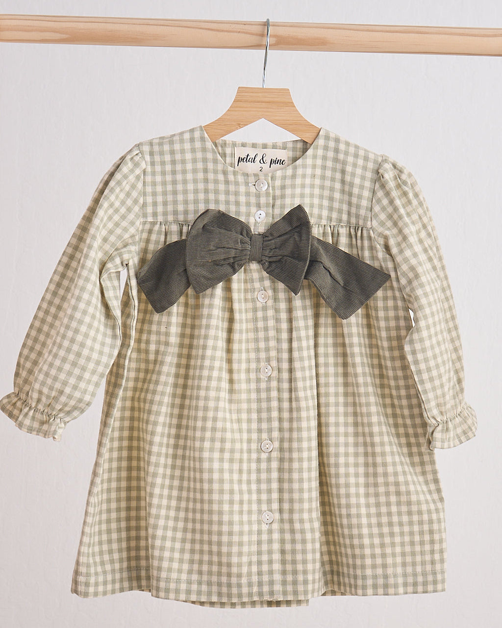 Cozy charm meets timeless style with our Austin Green Gingham Flannel Bow Dress. Made from soft, breathable flannel, this darling dress features a classic green gingham pattern with a statement corduroy bow that adds a sweet, vintage-inspired touch.