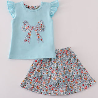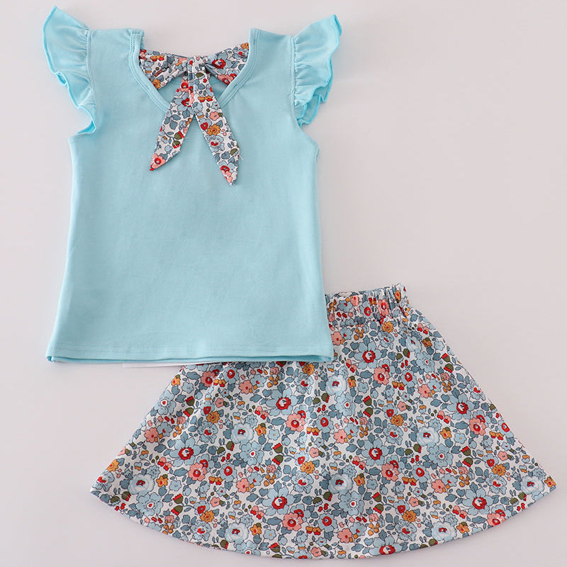 Let her play, twirl, and shine in our Blue Blossom Bow Active Skort Set! This darling two-piece outfit features a soft sky-blue top with flutter sleeves and an adorable floral bow applique that adds the sweetest pop of color. The matching floral skort blends comfort and style, giving her the freedom of shorts with the charm of a skirt—perfect for school days, playdates, vacations, or springtime adventures.