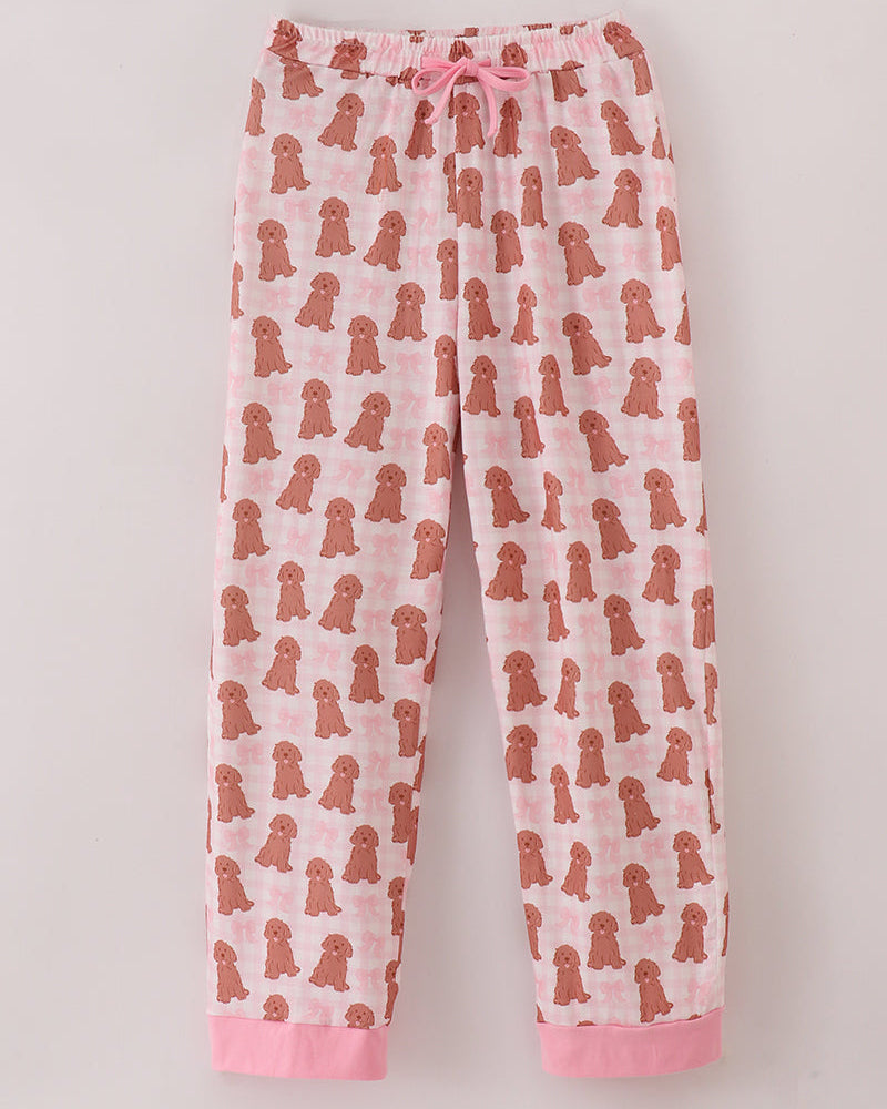 - Adorable doodle-style puppy print on soft pink check