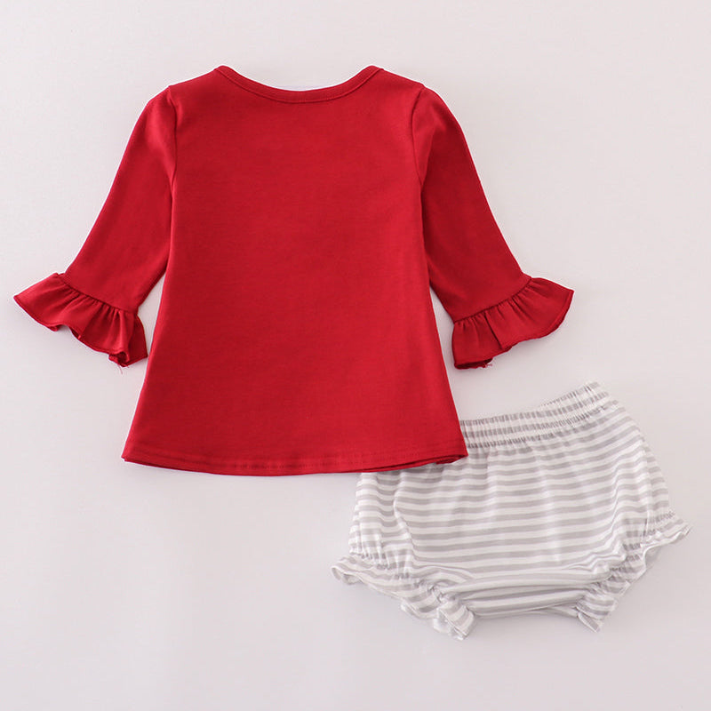 Full of charm and team spirit — the Crimson Cheer Elephant Ruffle Bloomer Set is a winning look for any little fan!