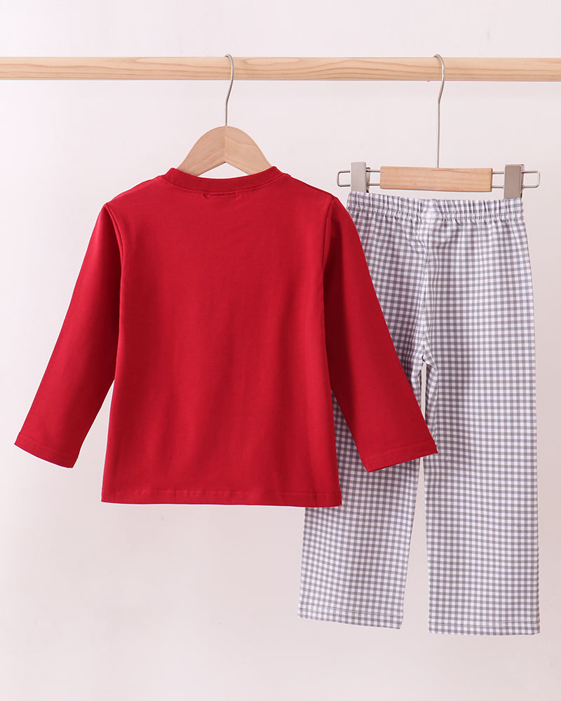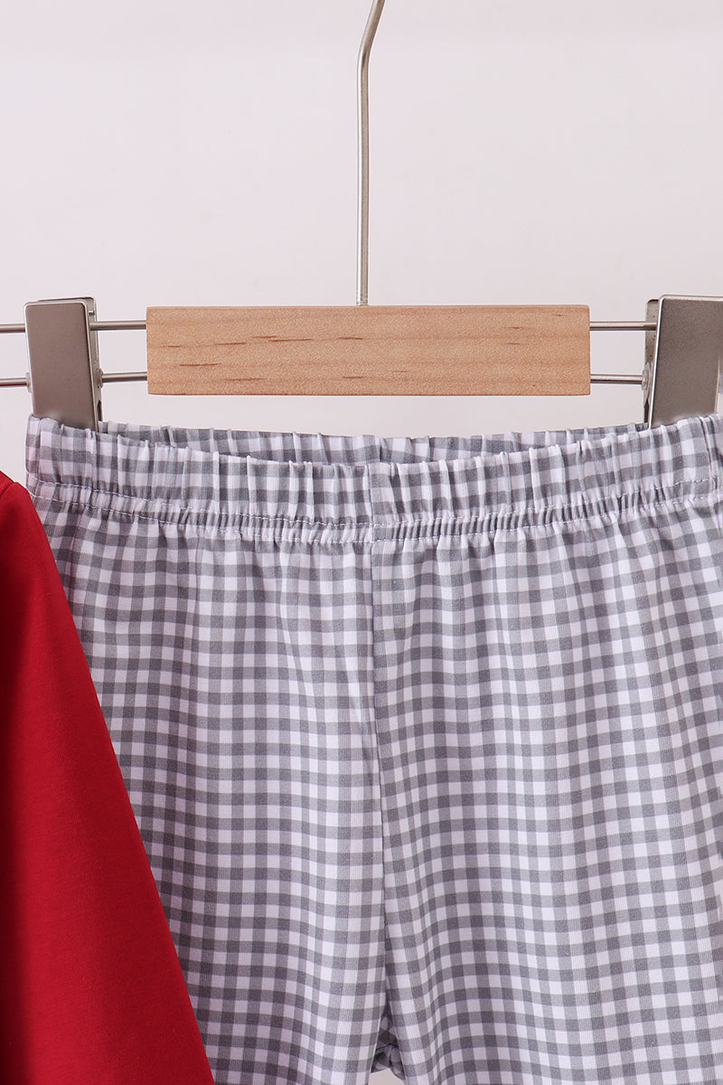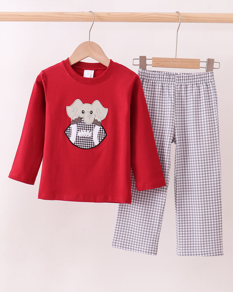Game-day cuteness loading! Our Crimson Sideline Elephant Boy Pants Set was made for little fans who love cheering in comfort and style. Featuring a soft crimson long-sleeve top with an adorable elephant appliqué holding a houndstooth football and coordinating gingham pants, this set brings all the classic Southern charm.