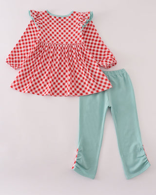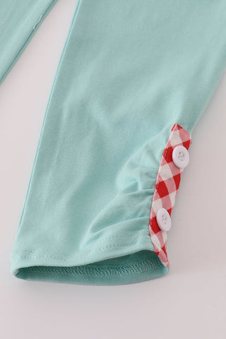 Mint ruffle trim adds a pop of color, while the coordinating mint pants include matching gingham button accents for the perfect finishing touch. Soft, breathable fabric keeps her comfy for school days, playdates, and family adventures.