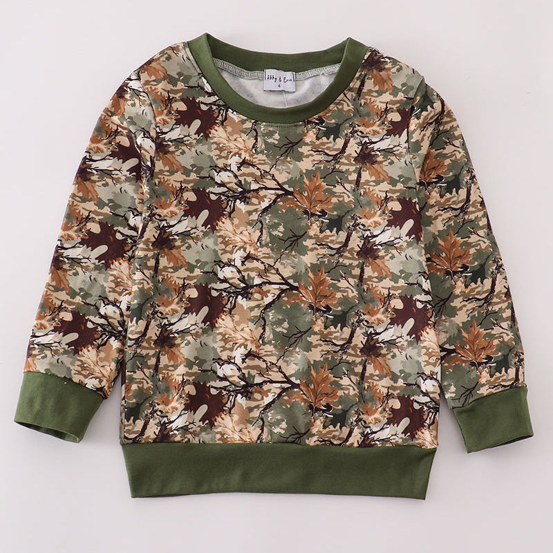 Crafted from soft, comfortable fabric, each sweatshirt offers a relaxed fit that’s ideal for layering during cool weather. The ribbed cuffs, neckline, and hem add durability while creating a clean, classic finish. With its detailed leaf-print camo pattern, this set delivers both outdoor-inspired style and everyday comfort.