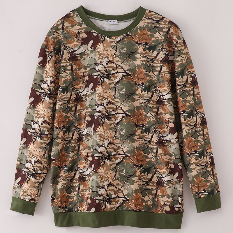 Step into the great outdoors in matching style with the Forest Foliage Dad & Me Camo Sweatshirt. Designed for fathers and their little explorers, this cozy pullover set features a rich woodland camo pattern filled with earthy leaves, warm brown tones, and deep forest greens—perfect for families who love nature, adventure, and bonding in the wild.