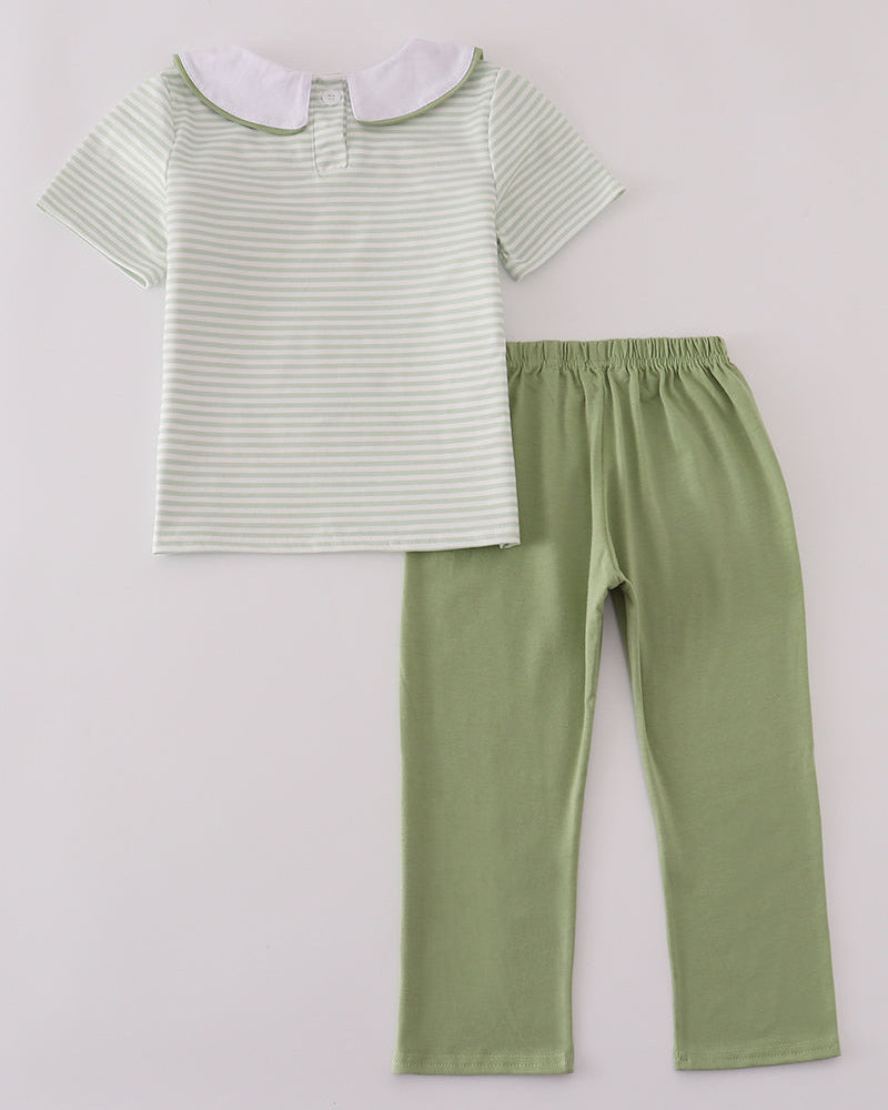 Gobble Gobble Embroidered Sage Stripe Boy Pants Set