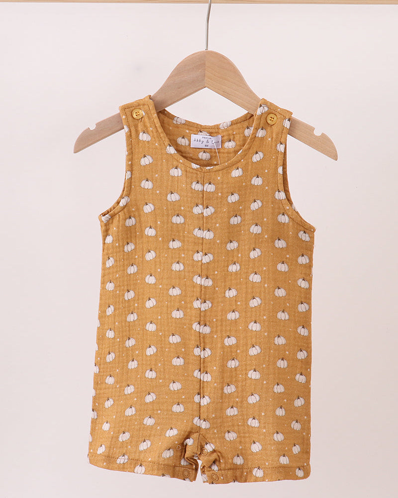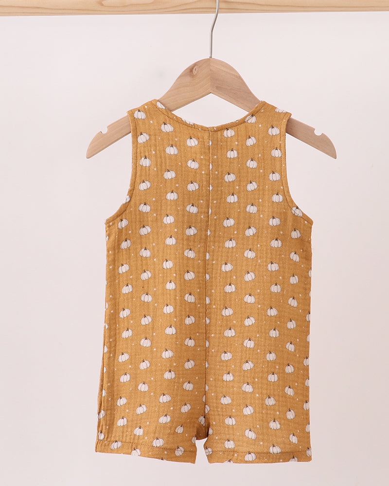 Dress your little one in timeless autumn style with our Golden Pumpkin Muslin JonJon. Made from soft, breathable cotton muslin, this romper is lightweight, gentle on delicate skin, and perfect for year-round comfort. Featuring a charming golden hue with whimsical pumpkin prints, it’s a versatile piece for playdates, family photos, or festive fall gatherings. Button details on the shoulders and snaps at the bottom make dressing and diaper changes quick and easy.