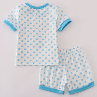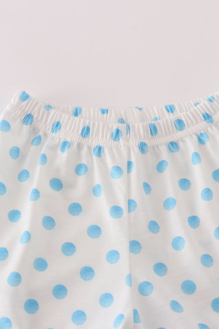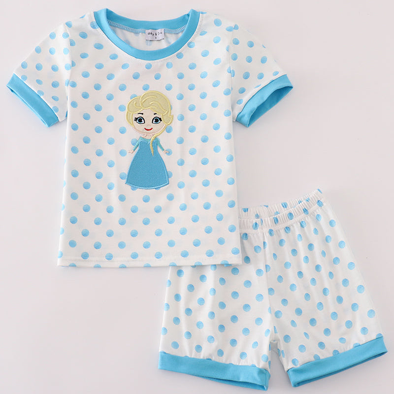 Cool, sweet, and winter–wonderful! Our Snow Queen Blue Polka Dot Girl Shorts Set features an adorable applique princess character on a soft polka-dot top with matching stretchy shorts. The contrast blue trim adds a pop of frosty charm while the breathable knit fabric keeps her comfy all day long.