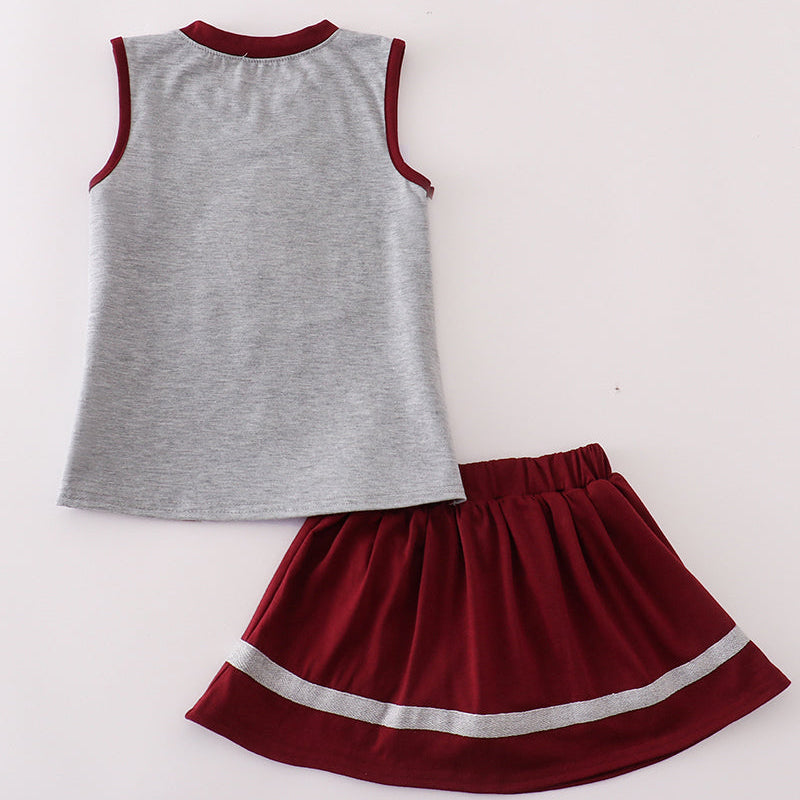 Get your little fan ready to yell Hail State! in this adorable Mississippi State Cheer Skort Set. Designed in classic maroon and gray, this two-piece outfit includes a sleeveless cheer top and a matching elastic-waist skort for easy, comfortable game-day wear.