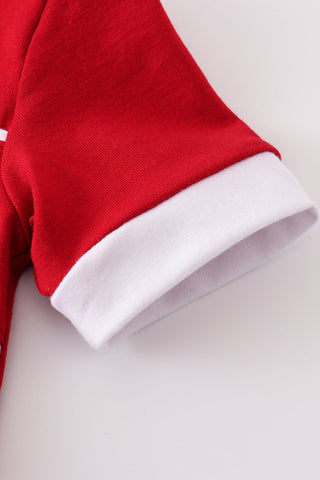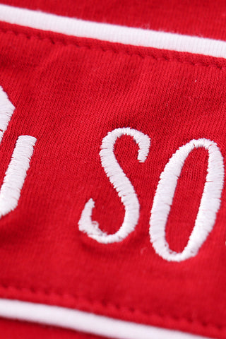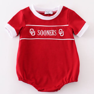 Dress your little fan in true Oklahoma pride with the Boomer Sooner Boy Bubble! This adorable red bubble romper features white trim accents and embroidered “OU Sooners” detailing across the chest — the perfect look for cheering on game day or showing team spirit year-round.