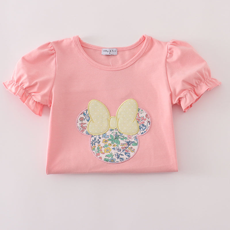 • Floral mouse applique with pastel bow