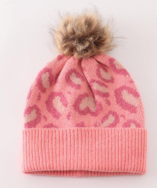 Pretty, playful, and perfectly cozy — meet the Blush Leopard Pom Beanie! 💗❄️