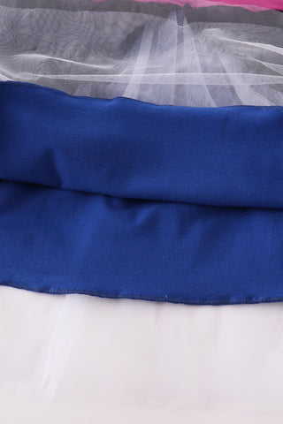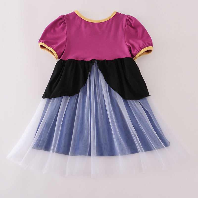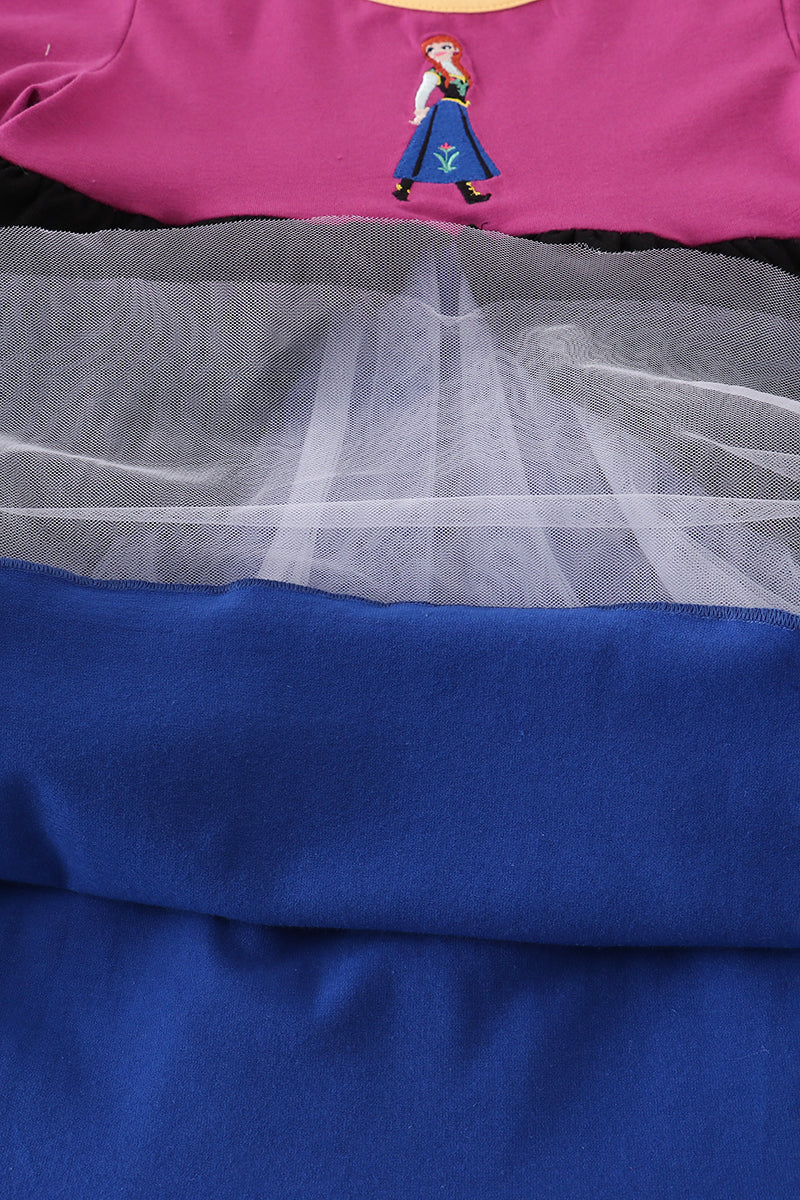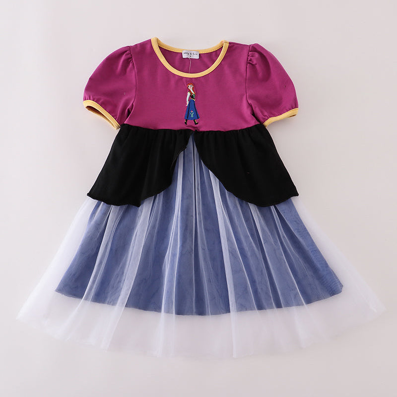 Let your little one twirl into a world of snowy magic with the Arendelle Adventure Ruffle Dress! Featuring an embroidered princess detail, a soft ruffled bodice, and a dreamy layered tulle skirt, this charming dress brings all the whimsical winter vibes. The rich magenta top, black overlay, and flowing sapphire skirt create a look inspired by sisterly adventures and brave hearts.