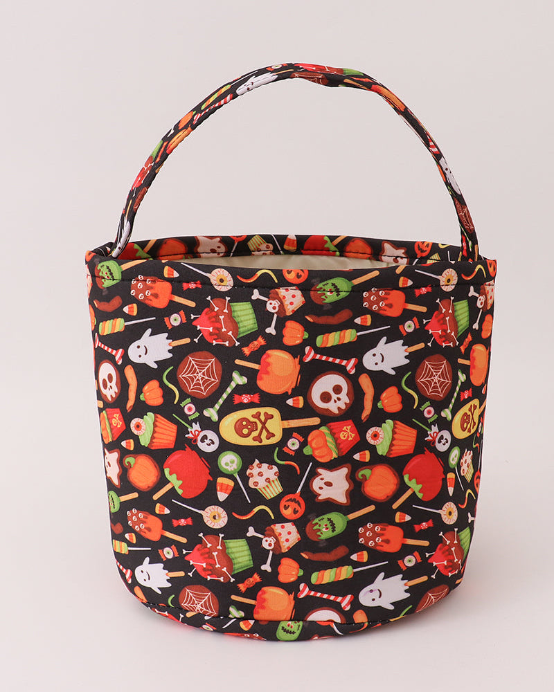 Get ready for a hauntingly fun Halloween with our Sweet & Spooky Treats Halloween Basket! This vibrant, kid-friendly trick-or-treat tote features a festive all-over print of candy, pumpkins, ghosts, cupcakes, spiders, and other spooky goodies — perfect for capturing the playful spirit of Halloween night. Made with durable, lightweight fabric and a sturdy handle, this basket is built to carry all your little one’s candy treasures in style and comfort. Whether it’s used for trick-or-treating, Halloween parties, or spooky season décor, this colorful candy-themed basket adds charm and fun to any celebration. Ideal for boys and girls alike!
