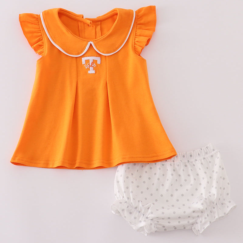 Cheer on the Volunteers in style with this classic Orange Tennessee Go Vols Embroidery Bloomers Set! Featuring vibrant orange fabric and charming embroidered details, this baby set is perfect for little fans ready to show their team spirit. Comfortable and cute, it’s ideal for game days, playtime, or any occasion that calls for a touch of fun and fandom.